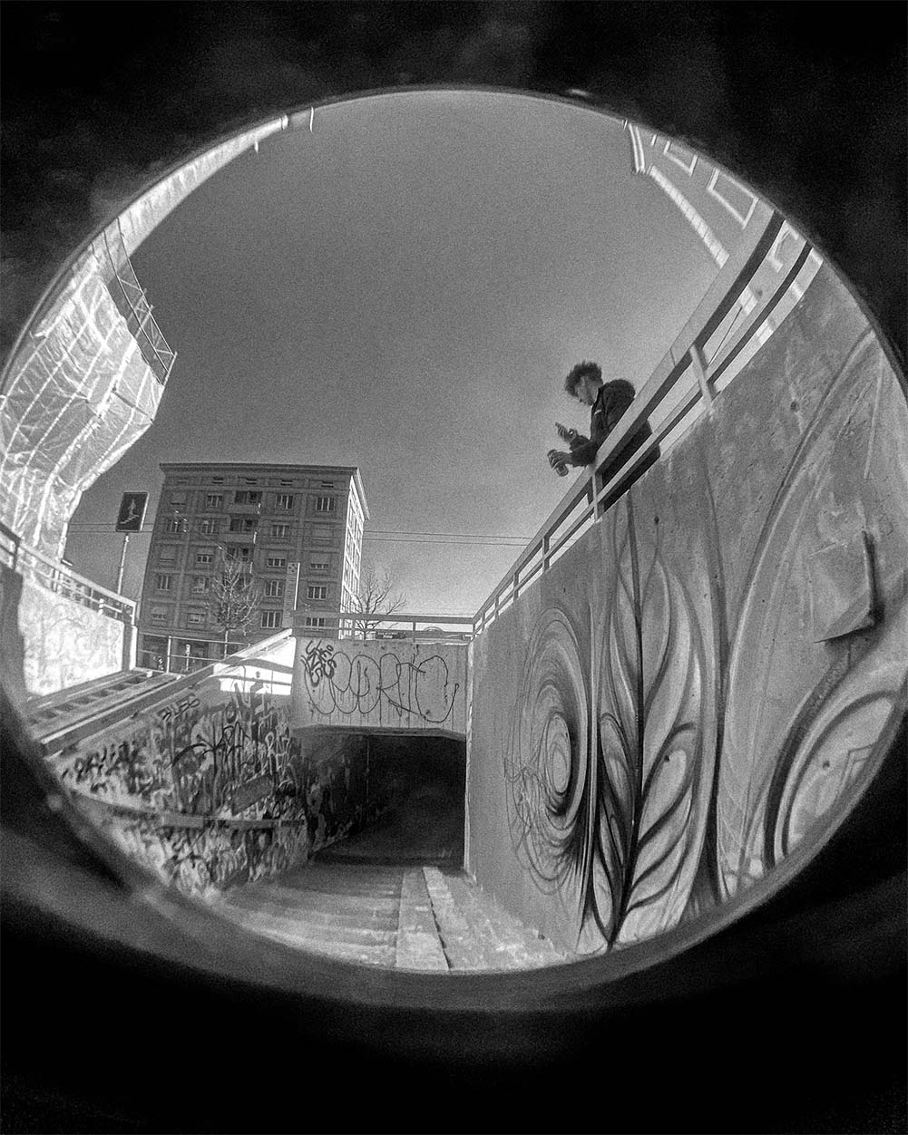 Creation of a black-and-white image series based on snapshots from my daily life over a two-month period in 2023. The series, within the "street photography" genre, blends architecture, portrait photography, and urban and technological culture.
