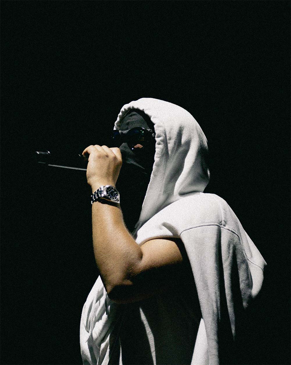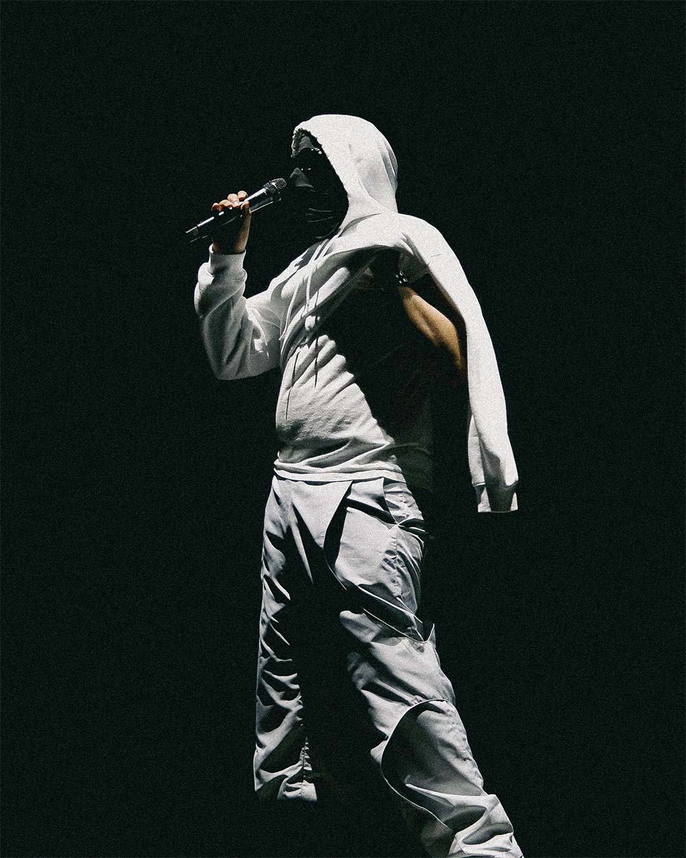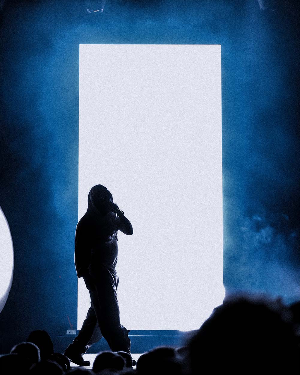 Creation of a photo series from Kekra's concert at the "Les Georges" festival in Fribourg. The first part, with a blue background, captures the concert's energy, while the second, with a black background, offers a more intimate, minimalist perspective, highlighting Kekra’s expressions and postures.