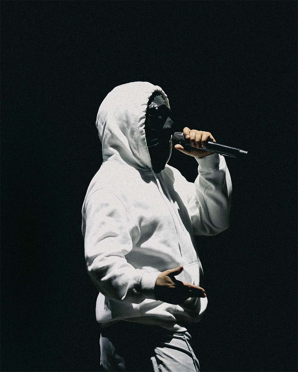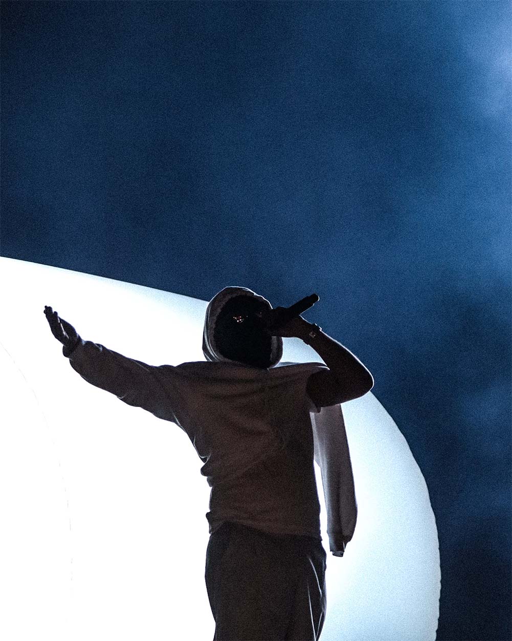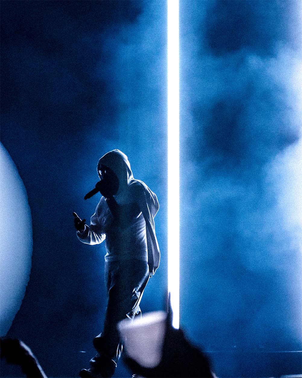 Creation of a photo series from Kekra's concert at the "Les Georges" festival in Fribourg. The first part, with a blue background, captures the concert's energy, while the second, with a black background, offers a more intimate, minimalist perspective, highlighting Kekra’s expressions and postures.